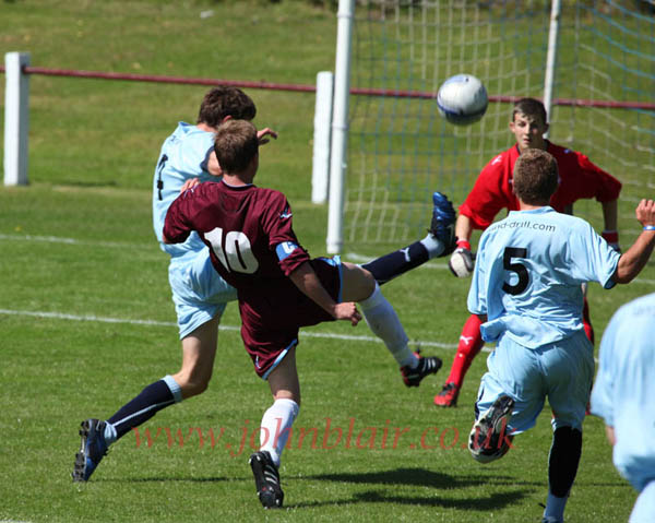 Below: Wayne McIntosh scores the winner against Falkirk XI